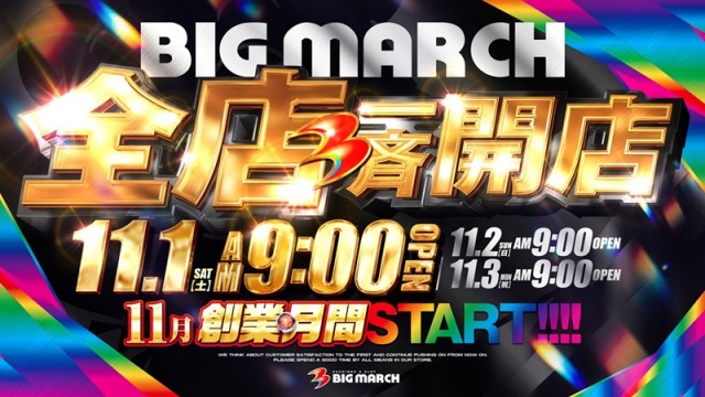 11月1日 ビックマーチ全店一斉開店!!9:00オープン!!