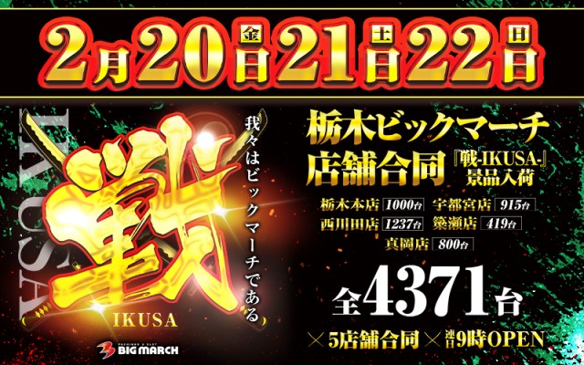 本日"2月23日"栃木ビックマーチ全店一斉OPEN!!