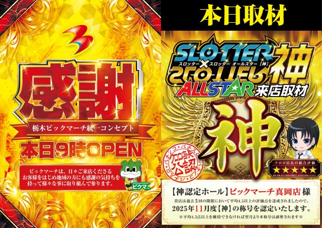 本日"11月19日"栃木ビックマーチ全店一斉9時OPEN