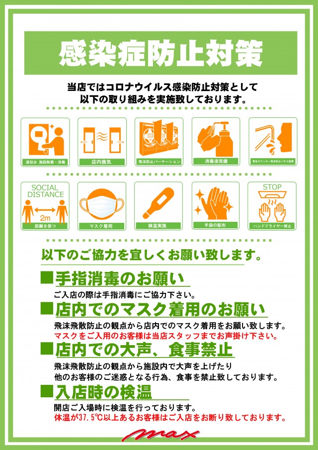 ご来店の際はマスク着用をお願いします。