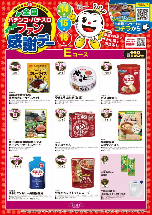 [4]パチ:120台 [1]パチ:120台 [1000円/46枚]スロ:124台 |