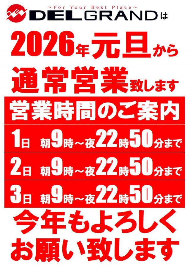 本日1月1日通常営業9:00~22:50♪初打ちもデルグラ!