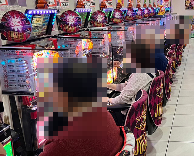 パチスロコーナーで、とくに盛況となっていたのがジャグラーシリーズ。