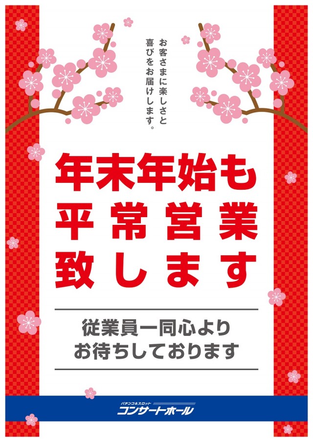 年末年始営業時間のお知らせ