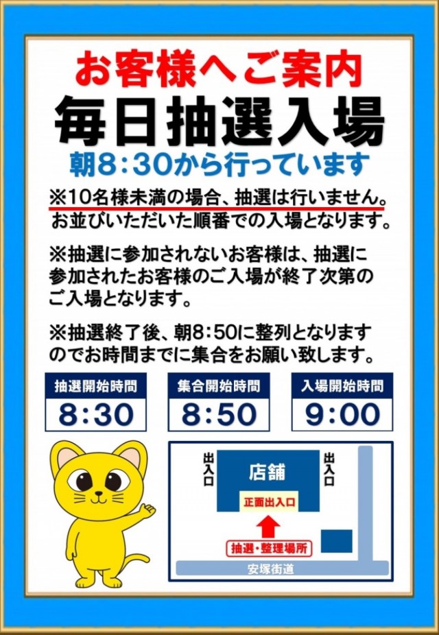 9:00 ~ 23:00(延長遊技終了22:55) |