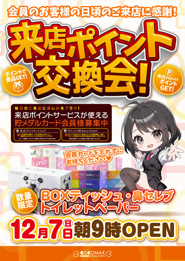 🎉来店ポイント交換会プラス🎉明日11月30日(日)朝9時❣️