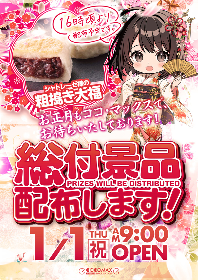 本日2026年1月1日(祝) 朝9時✾ 謹賀新年 総付景品配布します ✾