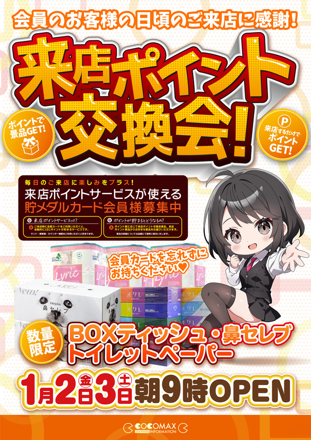 🎊謹賀新年🎊明日1月3日は来店ポイント交換会❣️