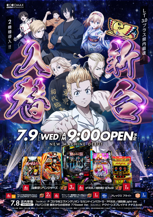 明日7月9日(水) 朝9時★ 新台入替(予定) ★