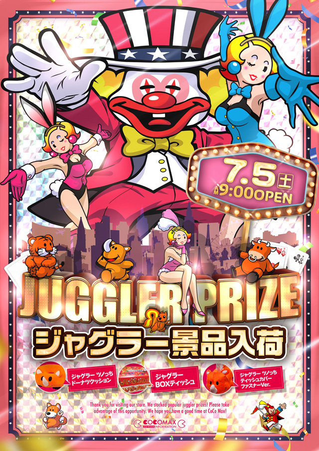 🤡ジャグラー景品入荷🤡明日7月5日(金)💗朝9時OPEN❣️