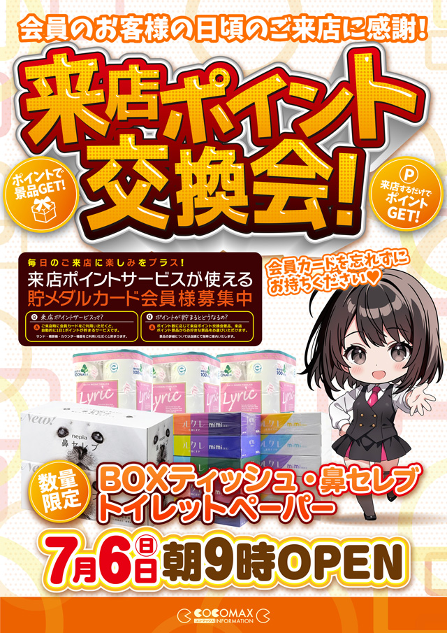 🎉来店ポイント交換会🎉本日7月6日(日)朝9時OPEN❣️