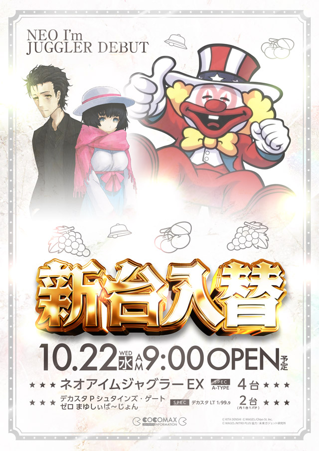 ✨新台入替(予定)✨本日10月22日(水)朝9時OPEN❣️