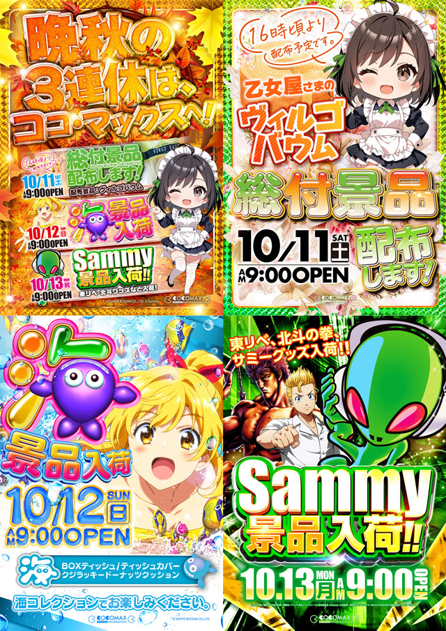 ✨新台入替(予定)✨本日10月8日(水)朝9時OPEN❣️