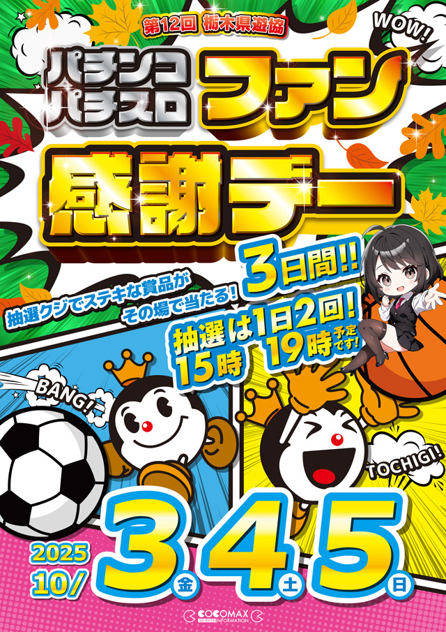明日10月5日(日) 朝9時✾ 栃木県ファン感最終日 ✾★ジャグラー景品入荷★