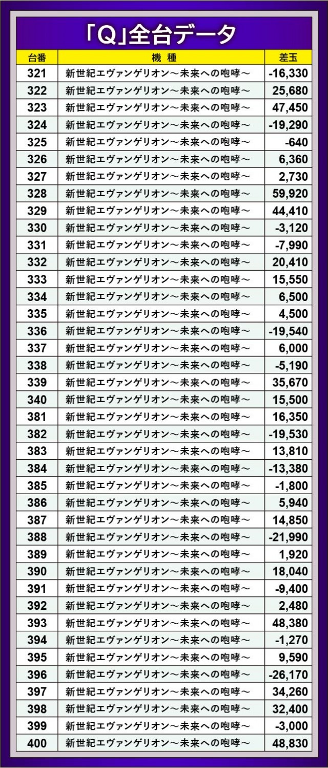 絶大な人気を誇る『新世紀エヴァンゲリオン〜未来への咆哮〜』は、大きな記録が続出する結果となった。328番台+59,920玉を筆頭に、4台の4万発OVER・2台の3万発OVERなど、突出した熱気を放っていたのが鮮烈だ。全体的に万発OVERが大量発生した内容で、遊技していたファンは有意義な時間を過ごせたことだろう。