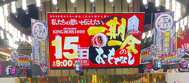 「KING BOSS 1000」にて実施された「ヒーローズレポート」は、パチスロ総差枚数+18,896枚・パチンコ総差玉数+368,890玉という結果で幕を閉じた。パチンコが鮮烈な記録を残しており、お祭り騒ぎと言っても過言ではない内容だ。パチスロについても万枚OVERを筆頭に高い熱量を放っては、ファンの満足度を向上させていたことだろう。次回も同等以上の内容に期待してしまうばかり。まずは同店の動向や情報をチェックしてもらい、来るべき日までに備えておくことをオススメするぞ!