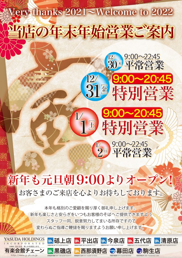 12/28(火) 有楽会館チェーン 全店 朝9時OPEN❗❗