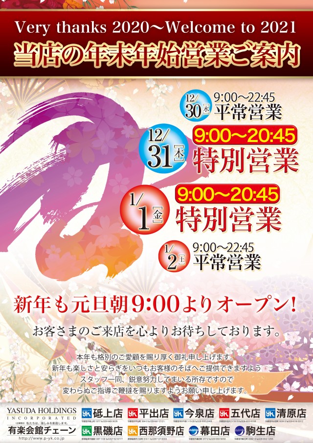 本年も格別のご愛顧を賜り厚く御礼申し上げます。