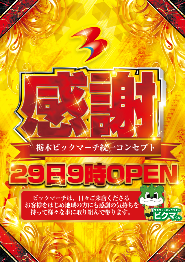 【本日29日】栃木ビックマーチ全店9時オープン!