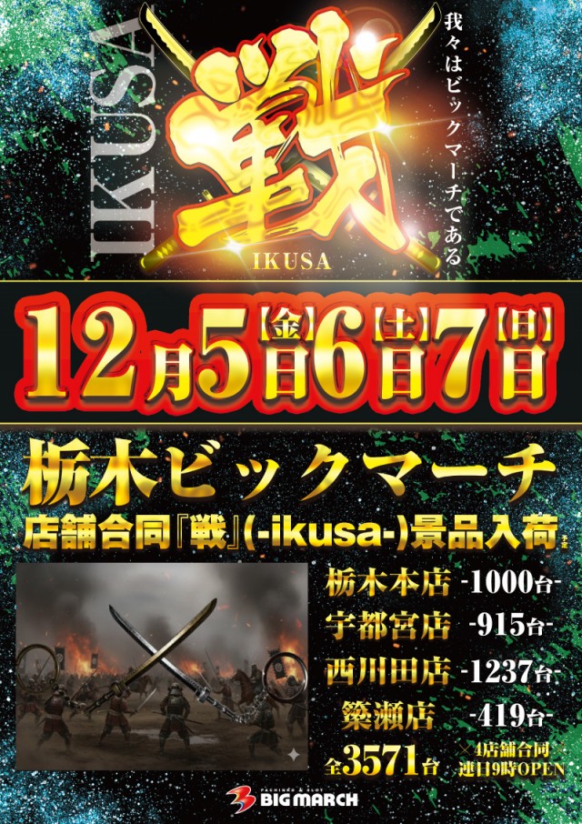 【本日3日】栃木ビックマーチ全店9時オープン!