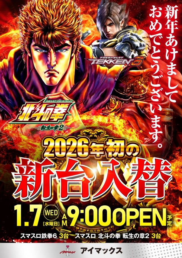 明日1月7日(水) 朝9時☆新台入替(予定)☆※朝8:40入場抽選締め切り