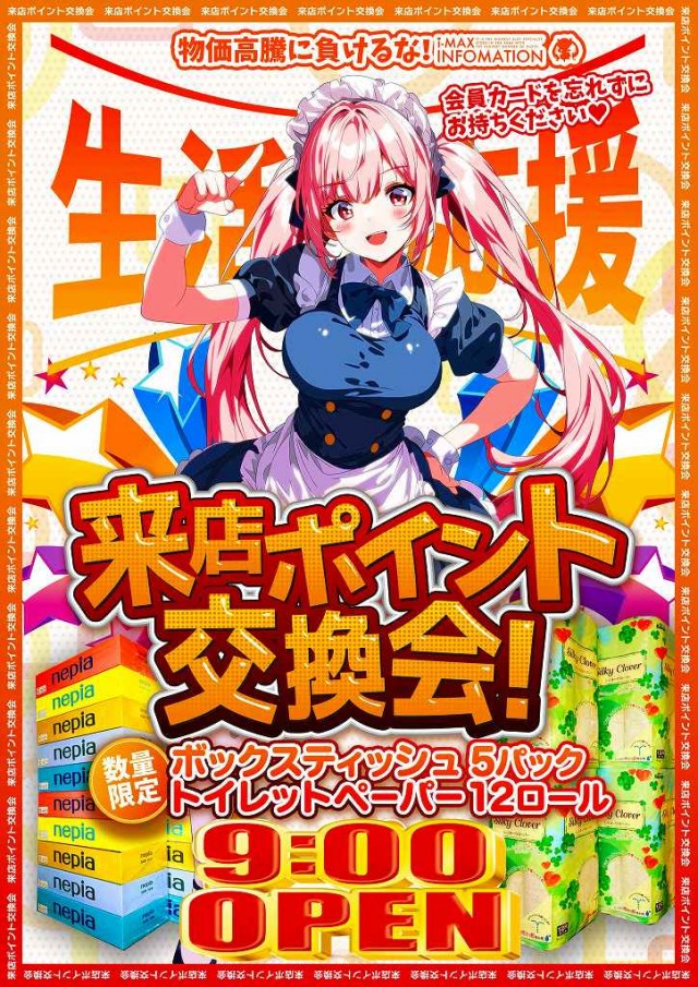 8月は周年月間8月12日は☆来店ポイント交換会☆※朝8:40入場抽選締め切り