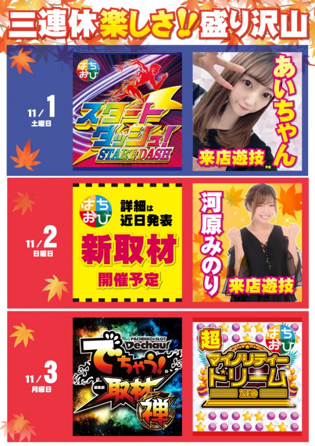 1位 10月19日(日) 2位 10月20日(月) 3位 10月18日(土)