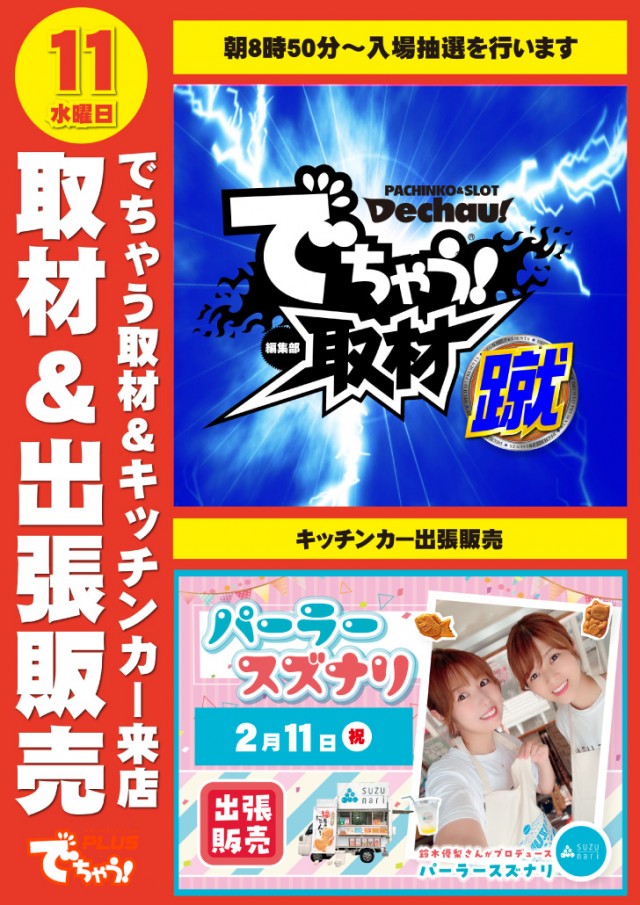 2/11祝日・でちゃう取材&パーラースズナリ予定!