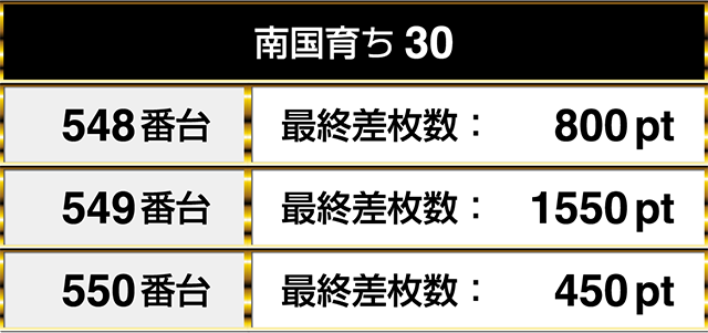 1日を通したデータでは、『南国育ち30』の3台が連なってプラスpt!!
