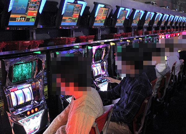 設置台数が多い「押忍!番長3」から1台設置の「パチスロ攻殻機動隊S.A.C. 2nd GIG」まで、さまざまな場所でにぎやかな光景を目撃!!