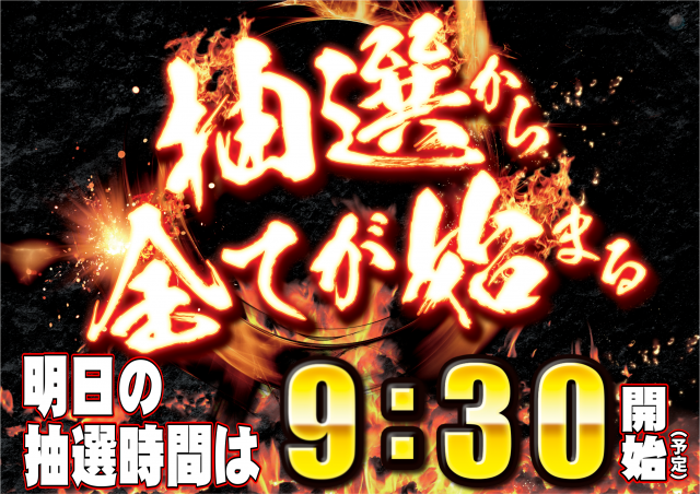 08:45 抽選開始 08:55 再整列 09:00 入場開始 |