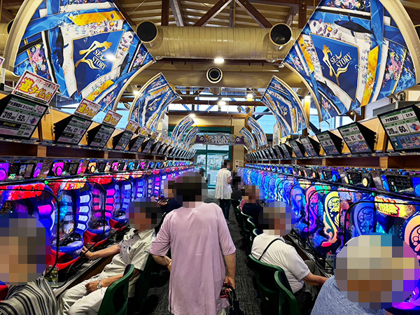 プレイヤーでにぎわう店内を見渡すと、パチンコ・パチスロともに明るい雰囲気が漂っていた。