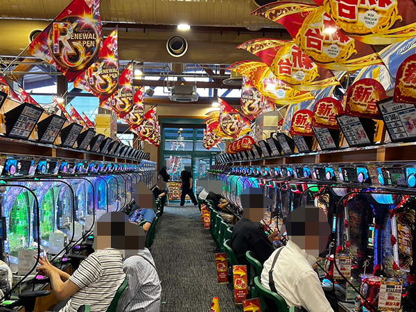 15時ごろの4円パチンコでは「P大海物語5」や「P大海物語4スペシャル」、「e北斗の拳10」が好評で、魅力的なシーンをシマの至る所で目にしている。