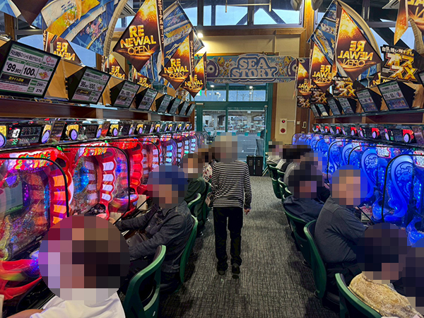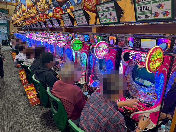 店内には老若男女を問わずプレイヤーが集合。パチンコ・パチスロの各シマから活気が感じられた。