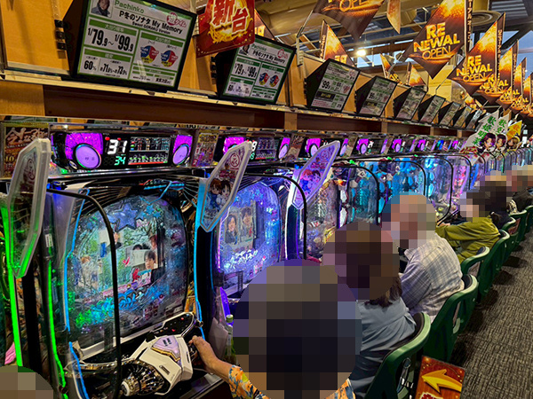 1円パチンコは遊パチコーナーを中心に人気が集まっており、ほぼ満席となるほどの盛況ぶりだった。