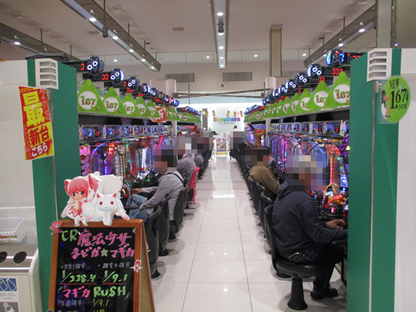 パチンココーナーを見てみると、1円・500円/360玉パチンコの低貸しコーナーが人気。常連と見られる年配のプレイヤーが多く集まっており、プレイヤー同士で楽しそうに会話しながら遊技する光景が多数見受けられた。