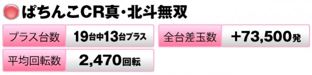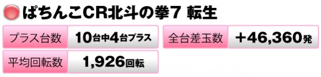 10台中7台がプラスで全台差玉数は+92,640発だった。