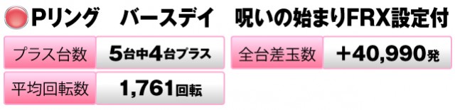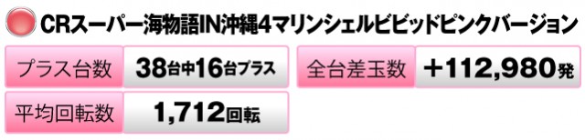 38台中16台がプラスで全台差玉数が+112,980発を記録。