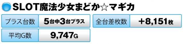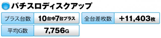 10台中7台がプラスで全台差枚数が+11,403枚だった。