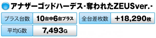 10台中6台がプラスで全台差枚数は+18,290枚をマークした。