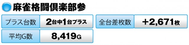 パチスロ全体では、251台中126台がプラスで、トータルの差枚数は+105,179枚を記録。