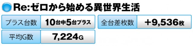 10台中5台がプラスで全台差枚数は+9,536枚という結果に。