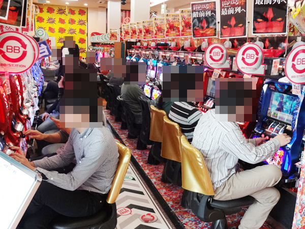 14時を過ぎた頃の20円パチスロでは、「バジリスク~甲賀忍法帖~絆」が人気。機種の性能をしっかりと引き出しているプレイヤーも目立ち、きらびやかな光景が広がっていた。