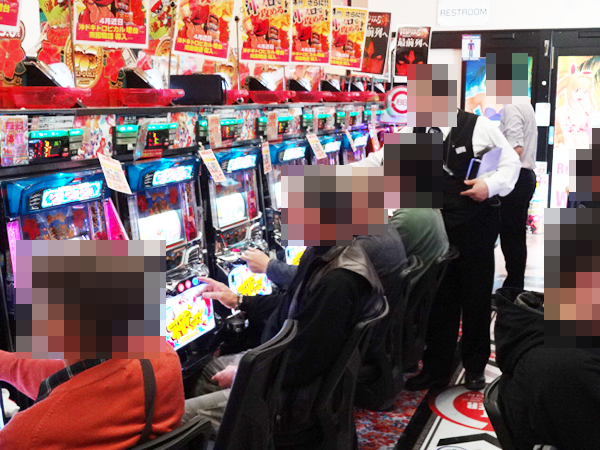 ホール内の様子をみてみると、パチンコ・パチスロコーナーともに稼働率が高く、たくさんのプレイヤーでにぎわっていた。