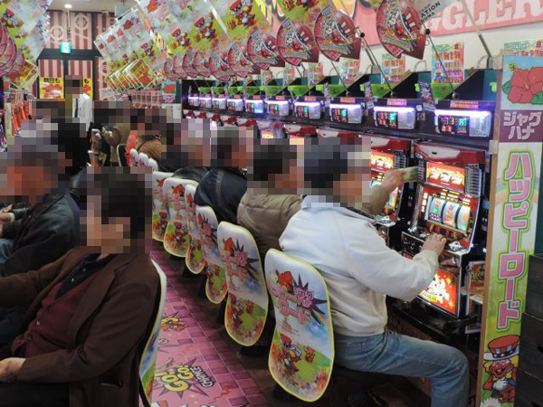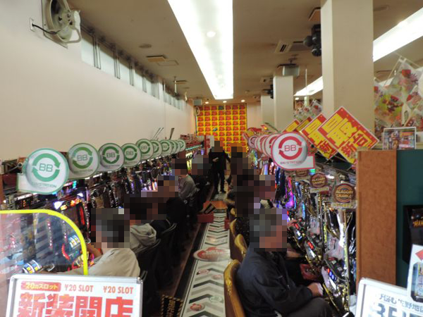 開店直後は20円パチスロが支持されており、なかでも「パチスロ アラジンAⅡ」とボーナスタイプのハナハナシリーズにプレイヤーからの注目が集まっていた。ハナハナシリーズは前回の取材時に人気だったことからも期待の大きさがわかる。