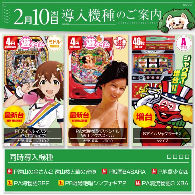 本日新台入替!!朝9時開店!ご来店お待ちしております!!