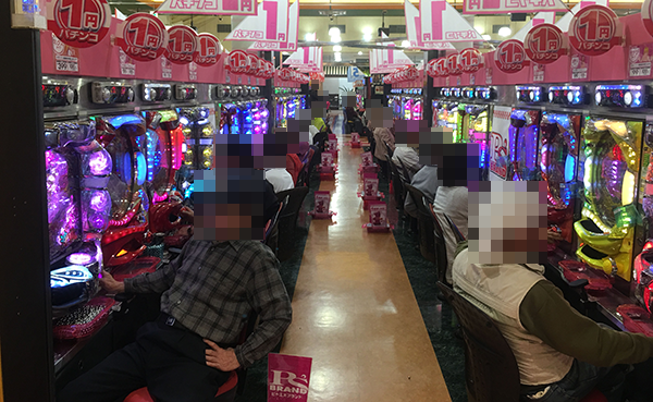 1円パチンコも盛況。