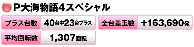 40台中23台がプラスで、全台差玉数は実に+163,690発にも及んだ。