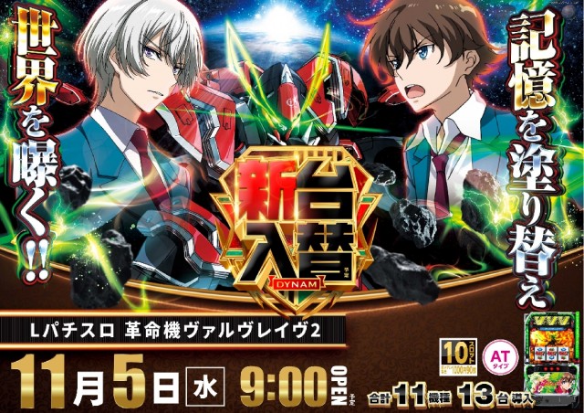明日5日(水)パチスロ革命機ヴァルヴレイヴ2など全11機種