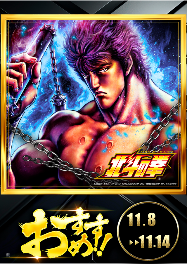 11月10日 新景品入荷 スロット北斗の拳おすすめ開催中